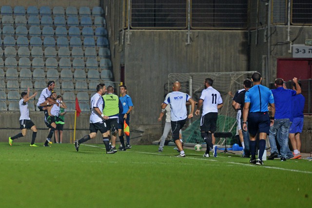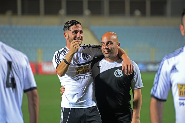 שלומי בן עשור וחבריו, חוגגים את ההעפלה לשלב הבא. (רמי גרידיש)