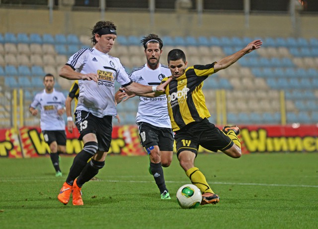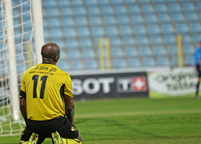 דוס סנטוס מתוסכל מול גד עמוס. (רמי גרידיש)