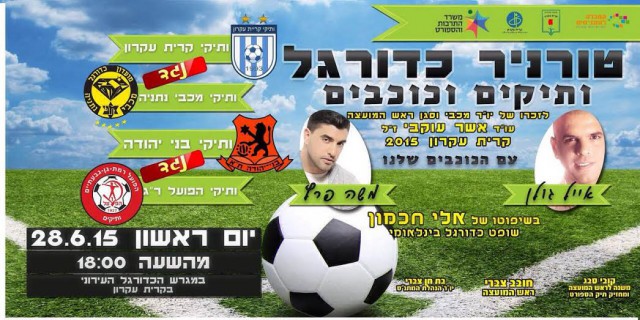 ביום ראשון ב-28.6.15, במגרש הכדורגל של קרית עקרון יערך טורניר הכוכבים לזכרו של עו"ד אשר עוקבי, שהיה דאז סגן ראש המועצה המקומית. הטורניר יחל בשעה 18:00 ויכלול את השתתפותם של ארבעת קבוצות הותיקים; קרית עקון, מכבי נתניה, בני יהודה והפועל ר"ג בחיזוקם של אייל גולן ומשה פרץ. כמו כן, ישפוט את המשחקים אלי חכמון, שופט ליגת העל (שופט כדורגל בינלאומי).