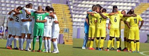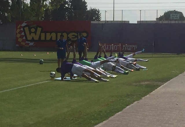 חיפשו ניצחון ראשון. שחקני הכח בחימום לפני המשחק (צילום: אבייתר ברק)