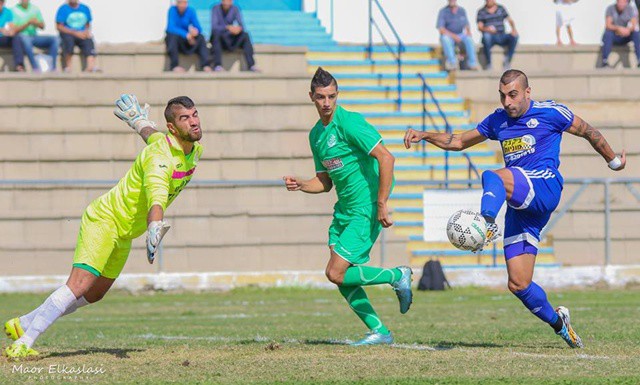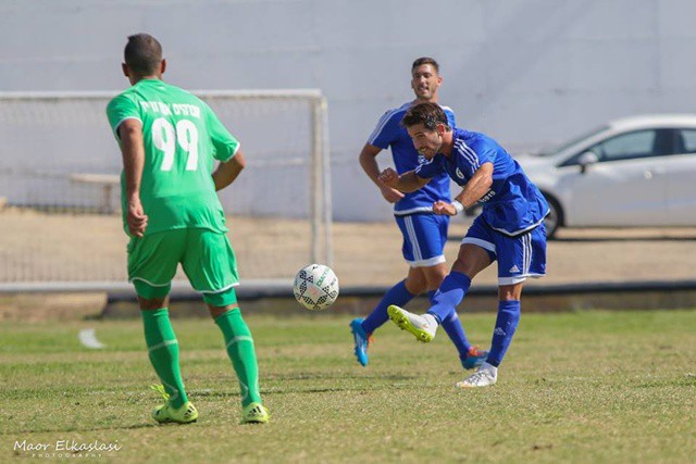 חלוץ נשר פאדי זיאדה מול מוחמד שבאט. (צילום: מאור אלקסלסי)