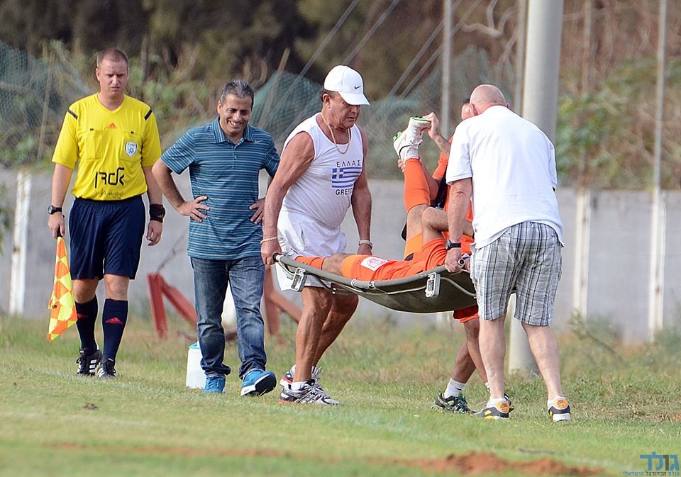 עופר טלספפה עם שחקנו הפצוע, חייב להשיג יותר עם הכפר. (מני בן ארי)
