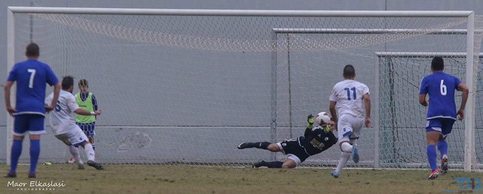 עומרי אלון עוצר את הפנדל של קווין. (צילום: מאור אלקסלסי)