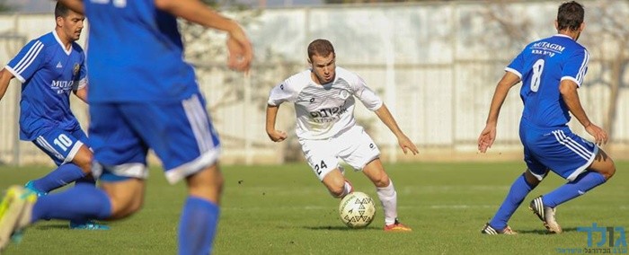 שחר בלילטי, כובש שער הניצחון לזכות קרית אתא. (צילום: מאור אלקסלסי)