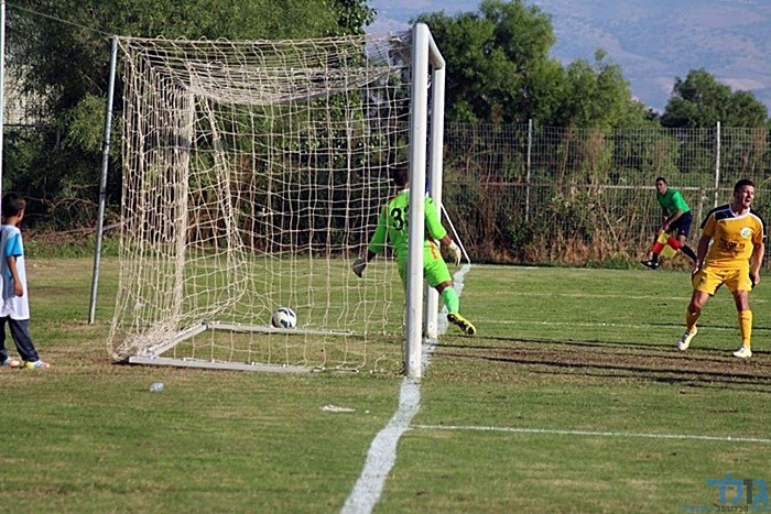 הכדור בדרך לשער...(צילום: אביב עובדיה)