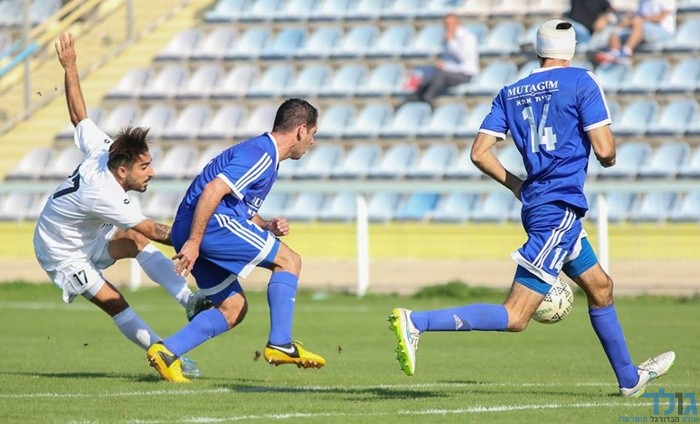 שחקני מגדל על הגדרות. האם יחגגו על הרצליה? (צילום: אביב עובדיה)