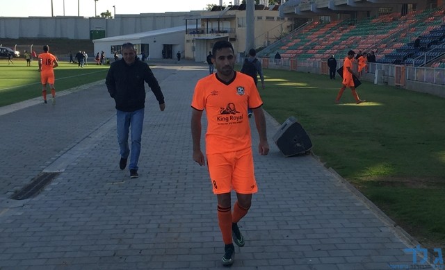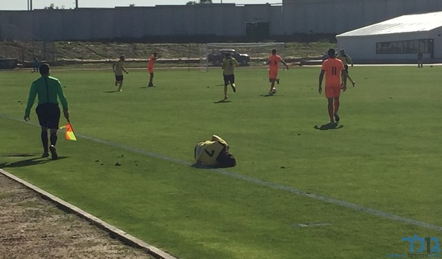 רועי הררי לאחר שנפצע בידו במהלך המחצית הראשונה (אבייתר ברק)