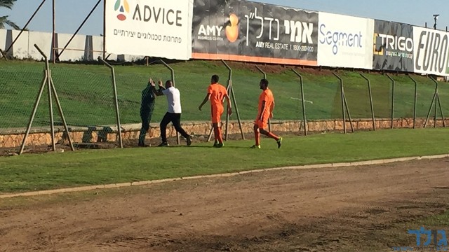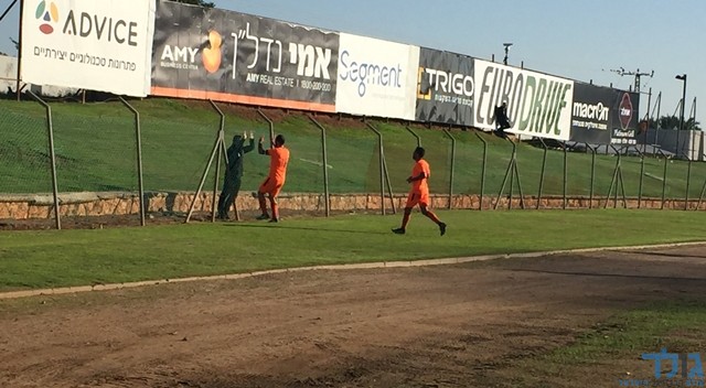 אוהד בוזגלו חוגג עם עוזרו את שער היתרון (אבייתר ברק)