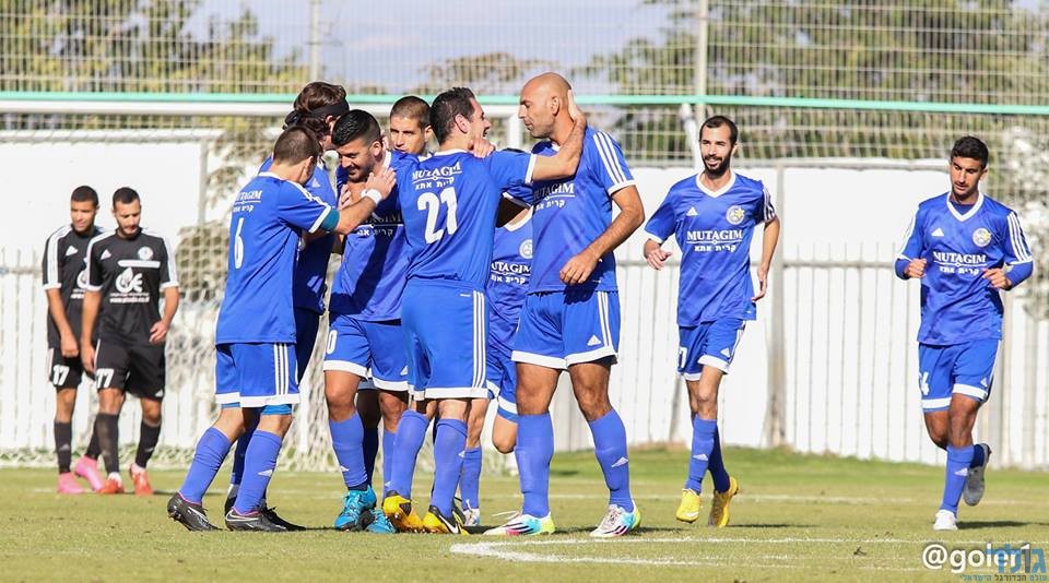 ג'וני טננבאום והחברים חוגגים את הניצחון החשוב. יוחאי כהן, עם סרט הקפטן, מאושר גם הוא. (מאור אלקסלסי)