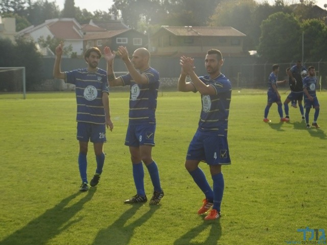 עופר בכר ושחקניו מרוצים מהניצחון. (אביחי חיים)