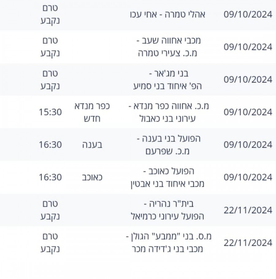 | 05-12-2025 | מכבי אחי איכסל - מ.ס. צעירי חיפה | 11:00 | 1 - 1 | |